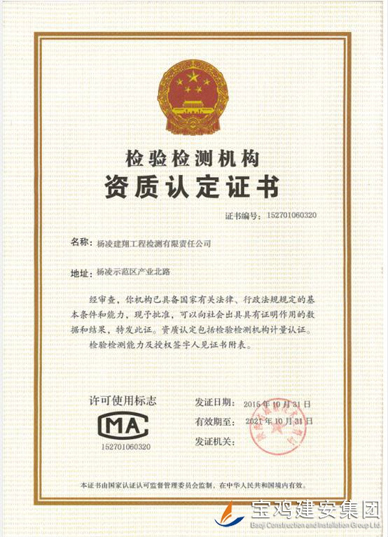 楊凌建翔工程檢測(cè)有限責(zé)任有限公司,由陜西省楊凌示范區(qū)規(guī)劃建設(shè)局批準(zhǔn),于2012年12月在陜西省楊凌示范區(qū)工商行政管理局注冊(cè)成立的股份制企業(yè),具有獨(dú)立法人資格的檢測(cè)機(jī)構(gòu)。并于2015年1月通過(guò)陜西省質(zhì)量技術(shù)監(jiān)督局的認(rèn)評(píng)取得計(jì)量認(rèn)證證書(shū)。本公司主要從事工業(yè)與民用建筑工程各項(xiàng)試驗(yàn)檢測(cè)業(yè)務(wù)。