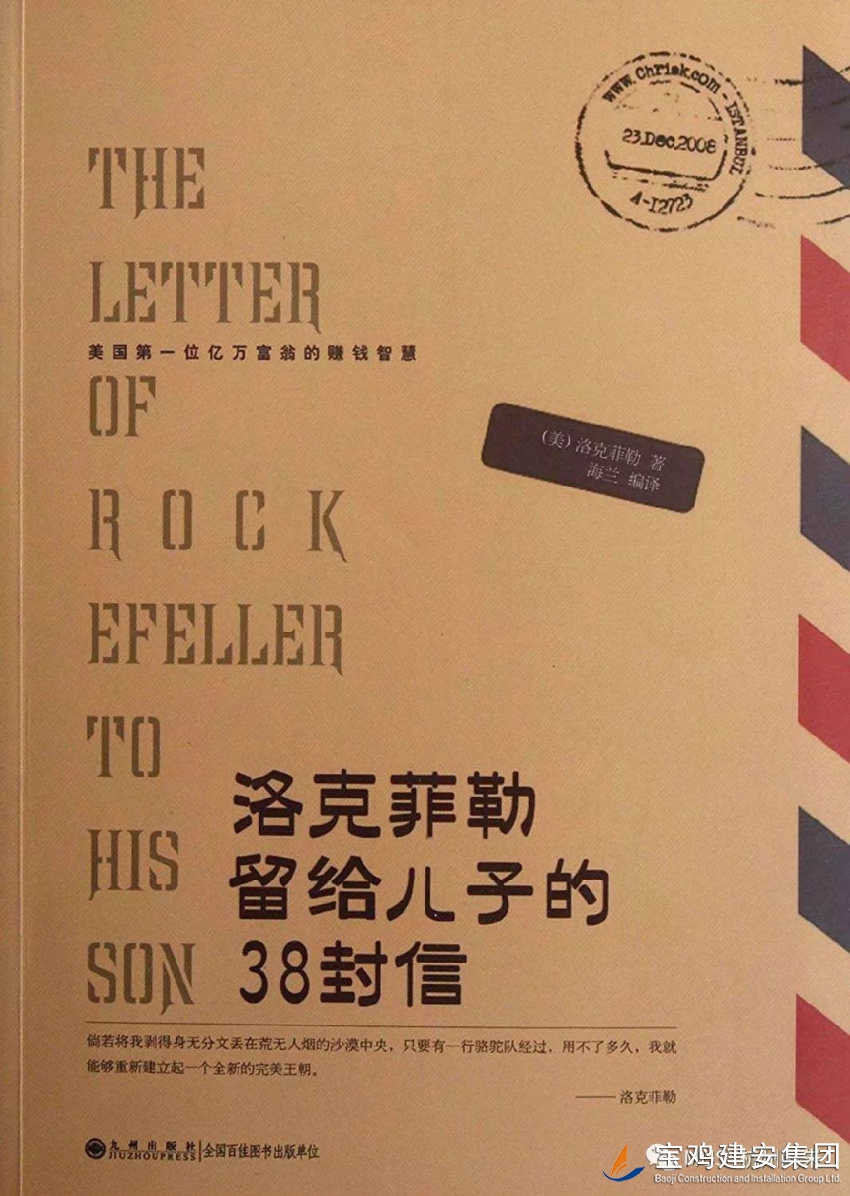 單位:第八項(xiàng)目部 作者:張兆陽(yáng) 中國(guó)有句古話:至樂(lè)莫若讀書,至要莫若教子。如何教育引導(dǎo)好年輕人,長(zhǎng)久以來(lái)都是世界各個(gè)階級(jí)父母所關(guān)注的話題。洛克菲勒,標(biāo)準(zhǔn)石油公司創(chuàng)立者、全球首富。2009年福布斯公布“美國(guó)史上十五大富豪”,洛克菲勒名列榜首。這樣一個(gè)商業(yè)巨擘,同樣也在研究如何指引年輕一代。在這本書中,就淋漓盡致地呈現(xiàn)出了他對(duì)教育的見解。