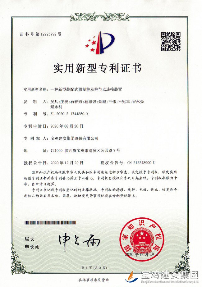 一種新型裝配式預制柱及柱節(jié)點連接裝置實用新型專利